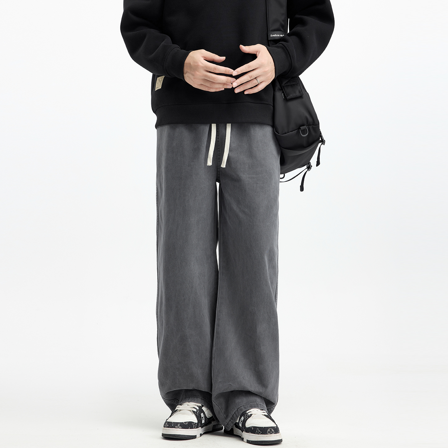 拉夏贝尔美式纯棉水洗牛仔裤男女2025新款秋季潮流休闲直筒长裤子