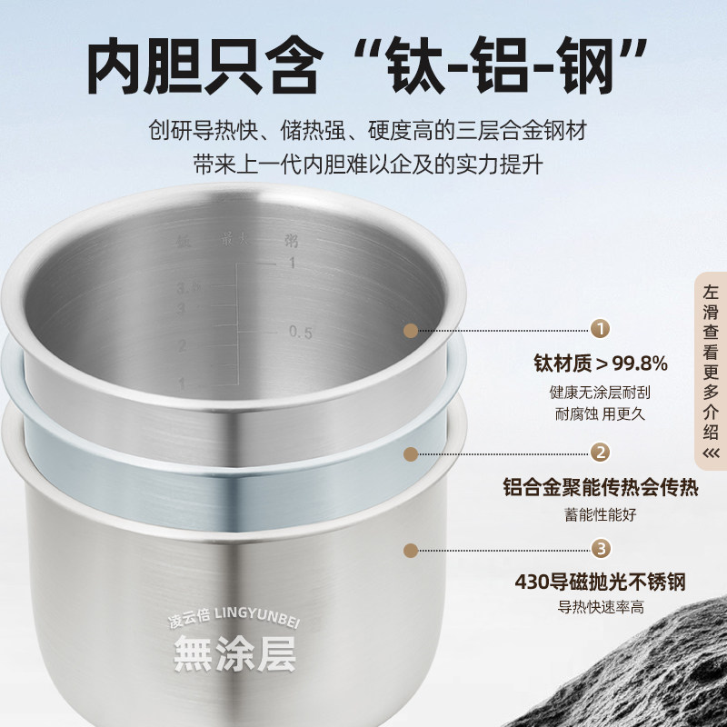 凌云倍纯钛无涂层适用利仁迷你小型电压力锅1.8L升内胆G-51锅配件