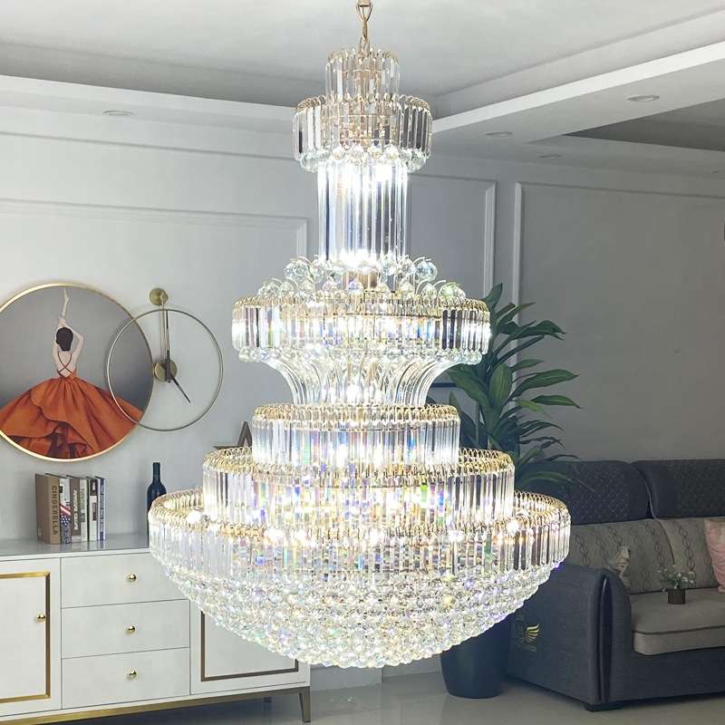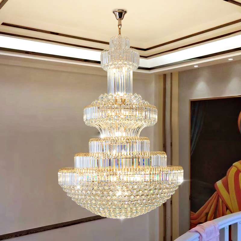 欧式复式楼大吊灯现代简约别墅楼中楼客厅水晶吊灯中空长吊灯灯具