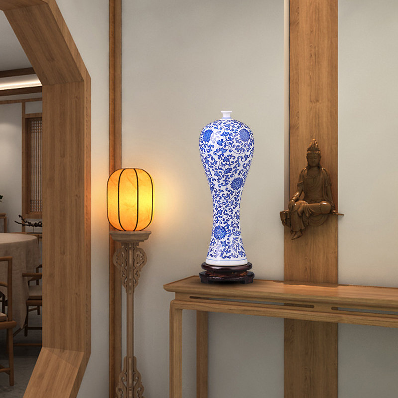 景德镇陶瓷器青花瓷花瓶美人瓶子客厅插花摆件现代家居酒柜装饰品