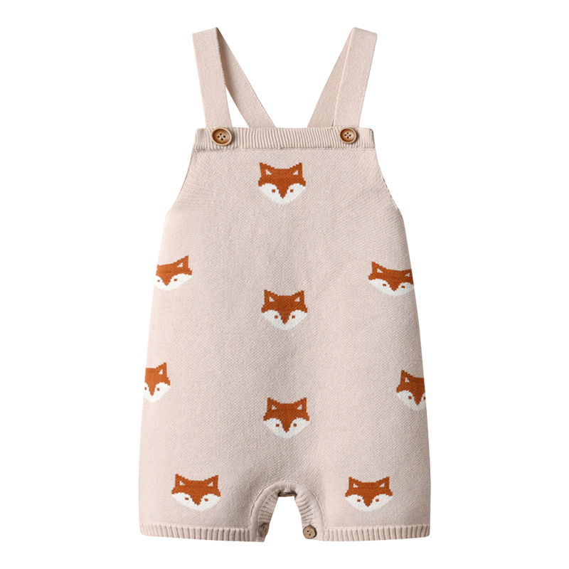 婴儿衣服春秋针织背带裤可爱狐狸针织连体裤ins宝宝萌娃吊带短裤