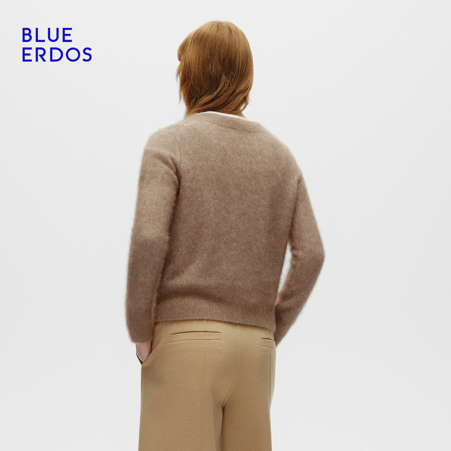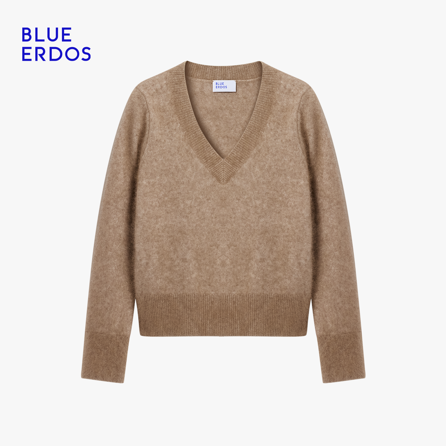 BLUE ERDOS早秋新品舒适质感绵羊毛混纺V领针织衫上衣B256D0044
