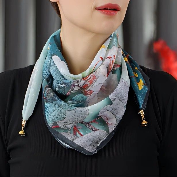 2025春夏新芳新款琉璃纱磁扣三角巾女百搭防晒护颈围巾懒人丝巾