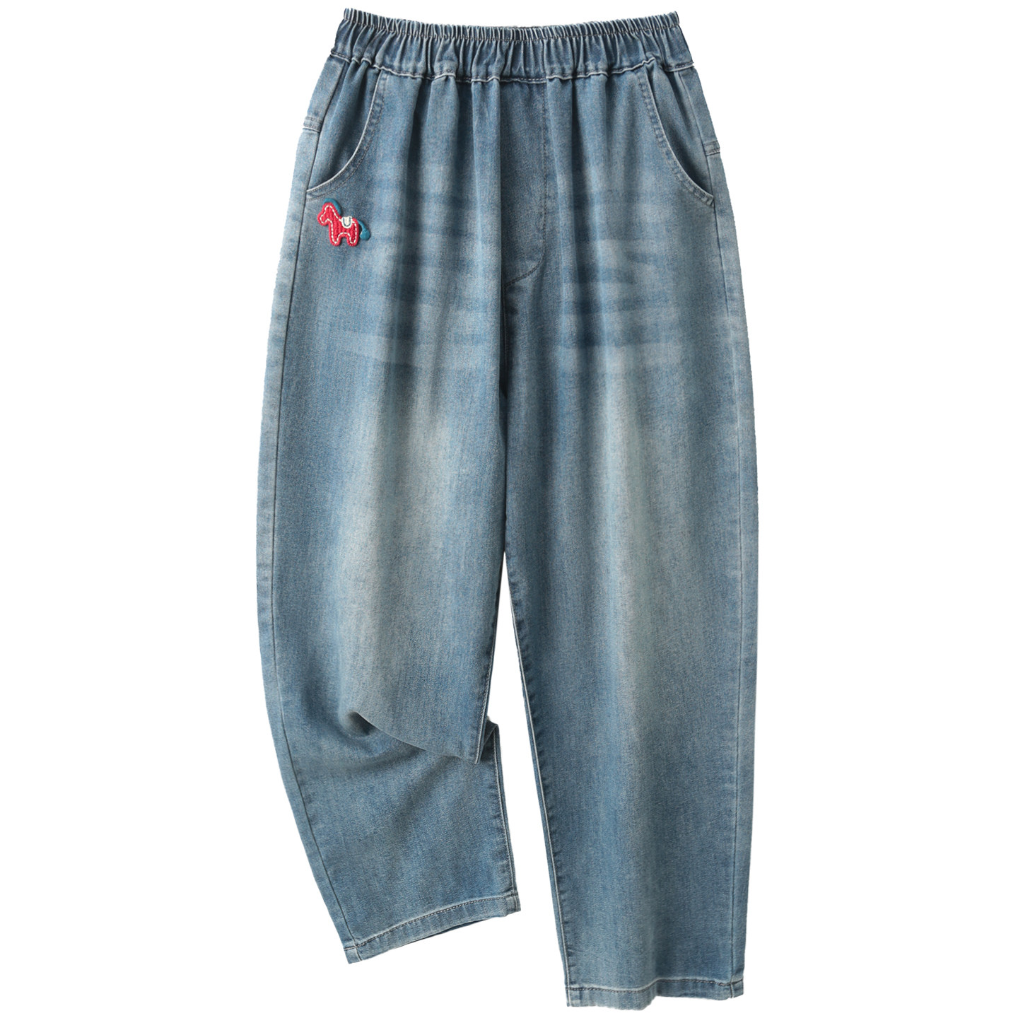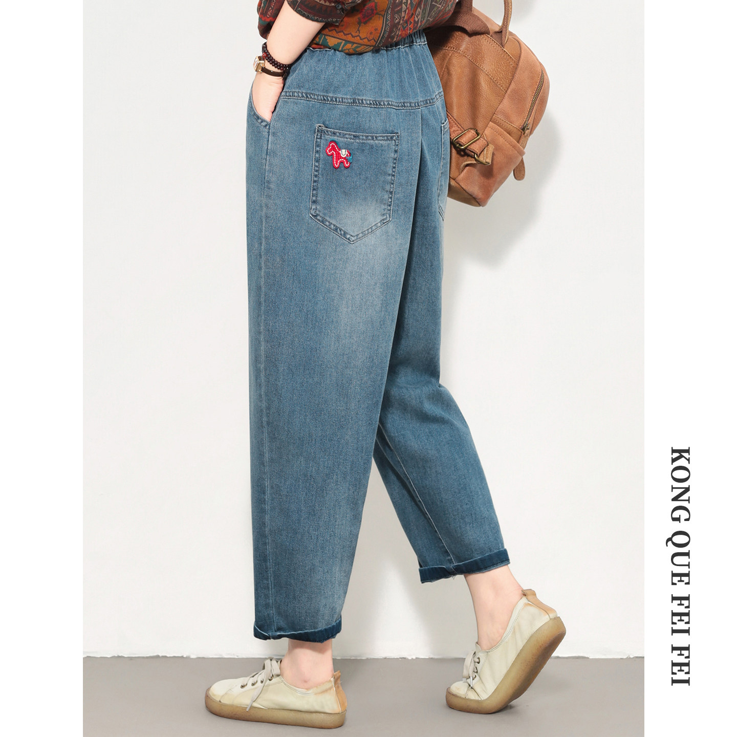 孔雀飞飞 版型爆赞 2026春装新款韩版大码遮肉弹力牛仔哈伦裤女