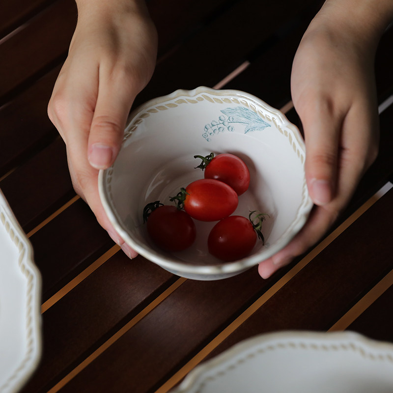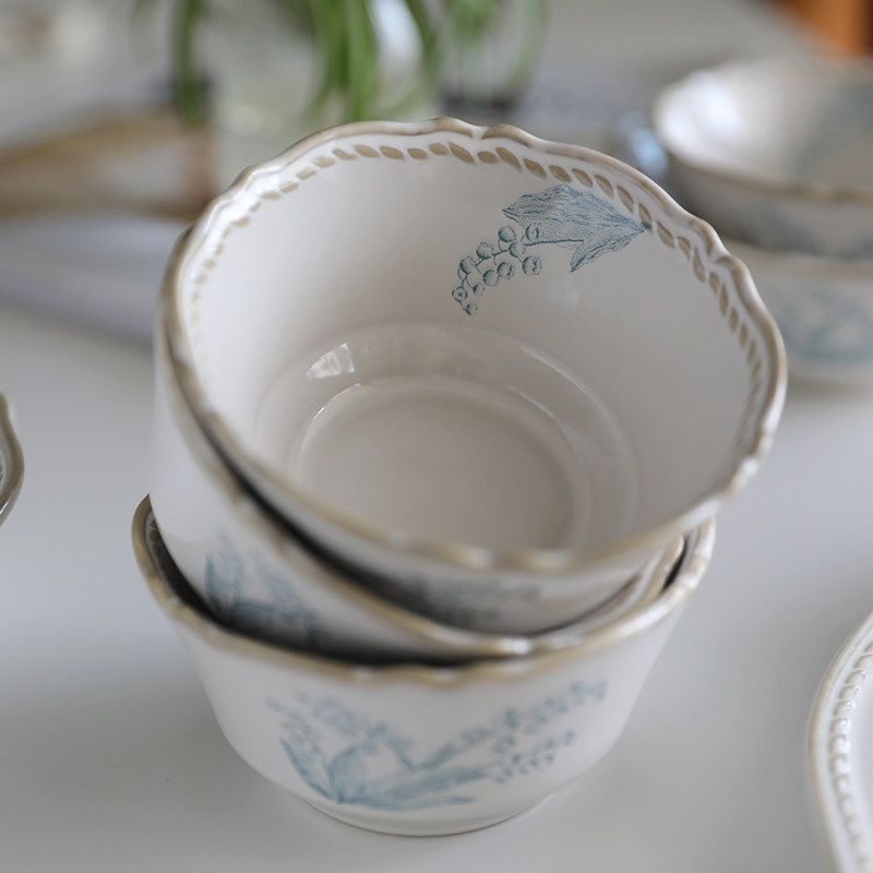 法式复古铃兰花陶瓷米饭碗高颜值家用高级感酸奶碗燕麦碗 5英寸