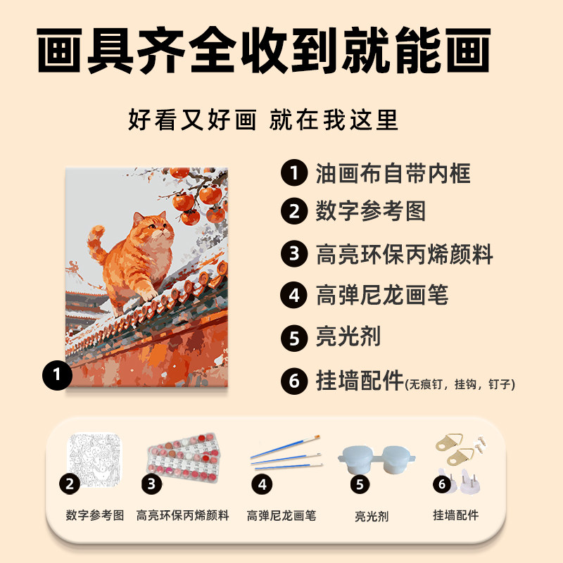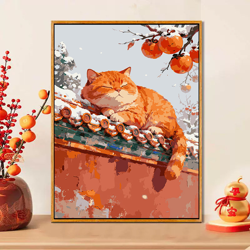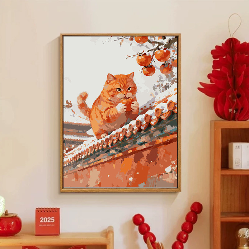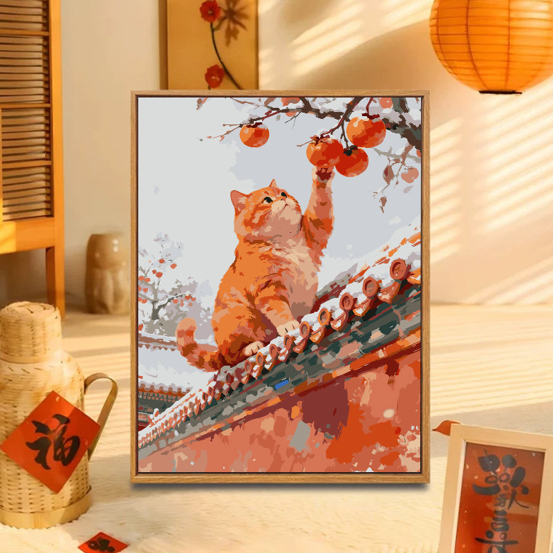 柿柿如意大橘猫咪数字油画diy填充填色手工绘故宫丙烯油彩装饰画