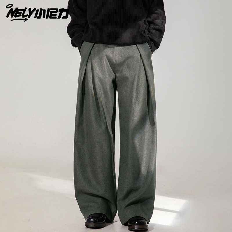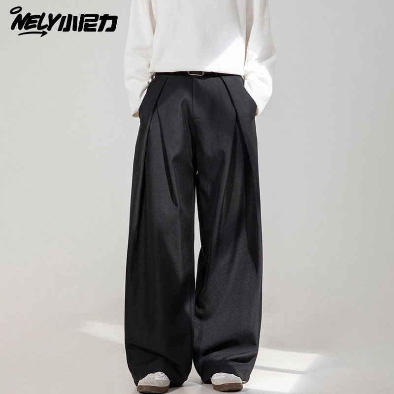 卡其色垂感西裤男士春秋夏季新款宽松大码直筒西装裤男生休闲裤子