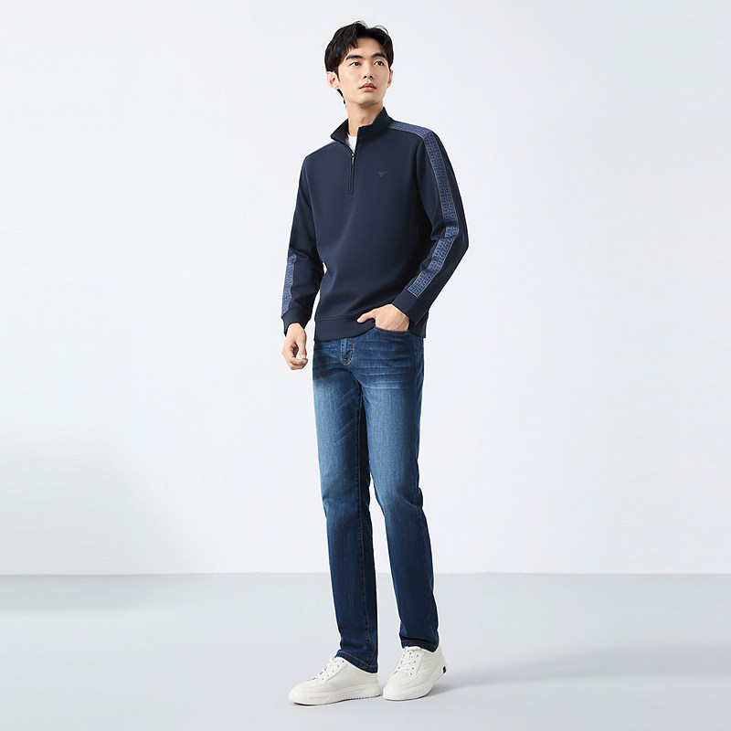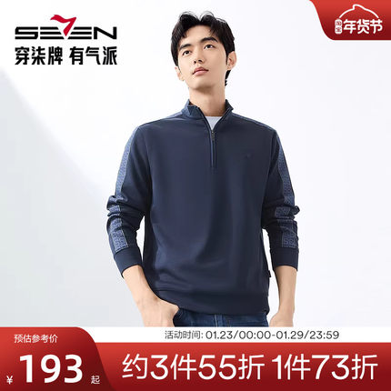【含莫代尔】柒牌半拉链卫衣男2025春季新款休闲百搭立领套头上衣