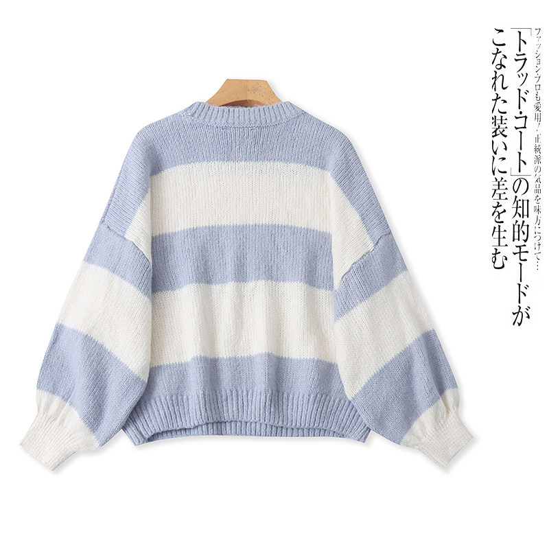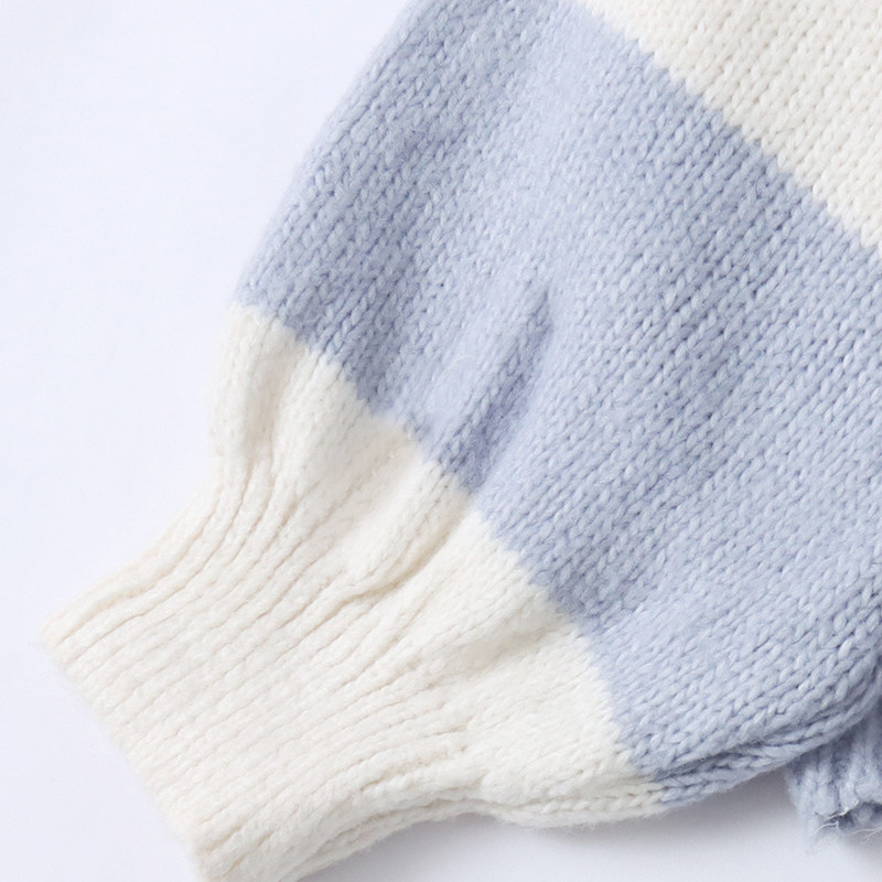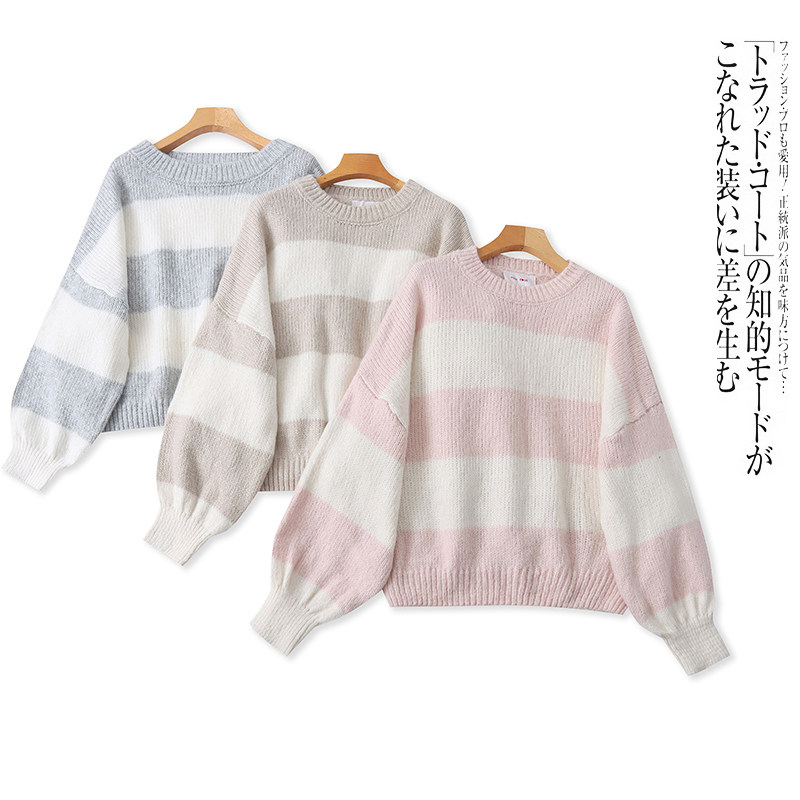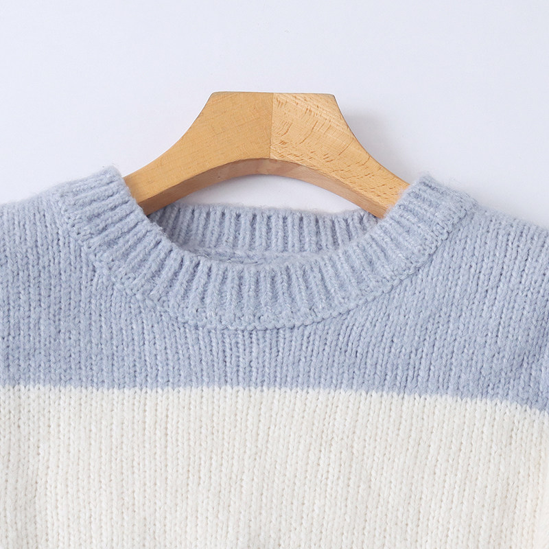 G4275外贸欧美女士毛衣冬款圆领套头条纹拼色宽松慵懒风针织衫