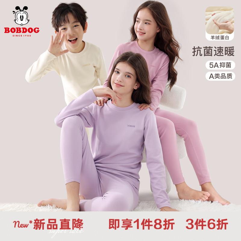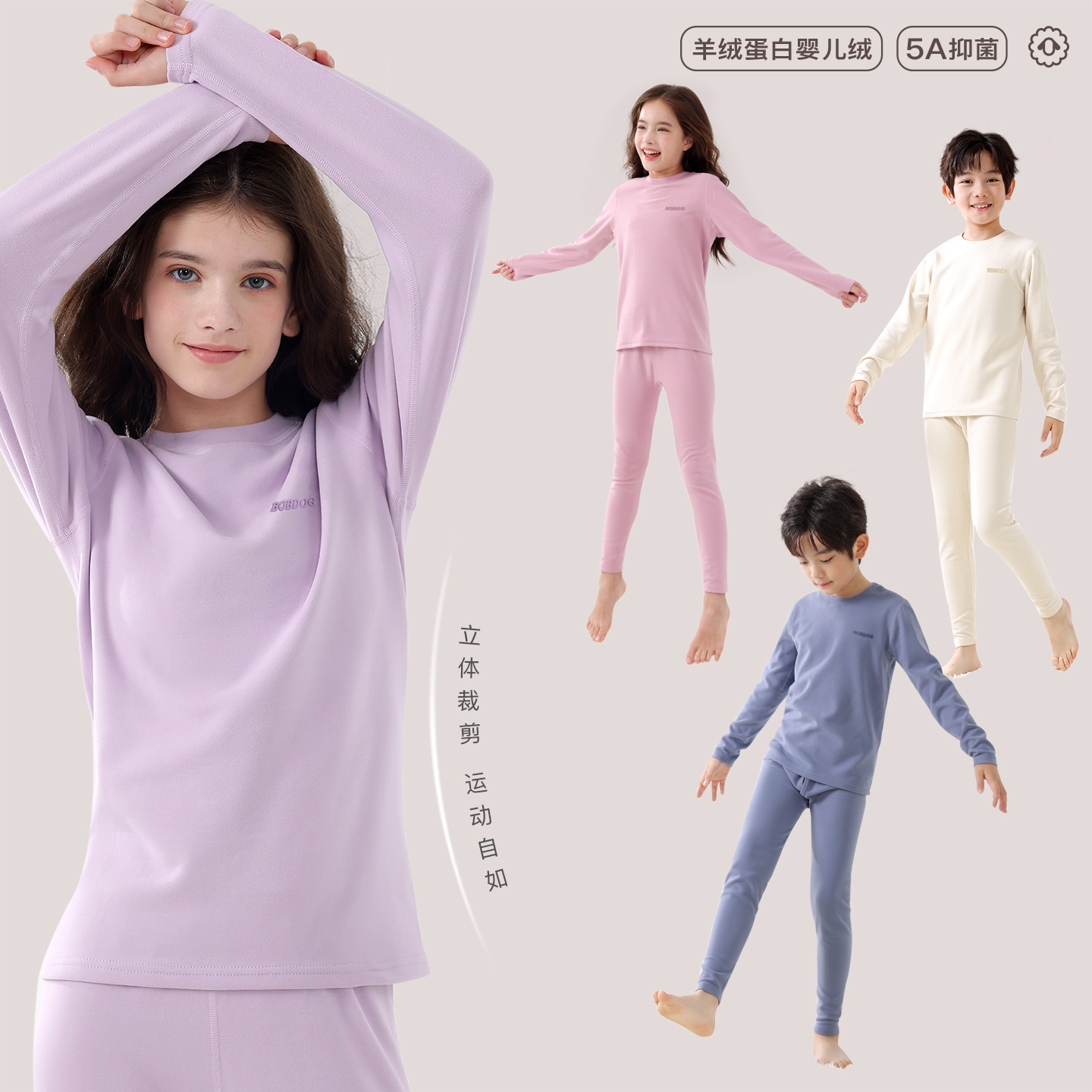 巴布豆儿童保暖内衣套装秋冬加厚男童秋衣秋裤女童睡衣中大童抗菌