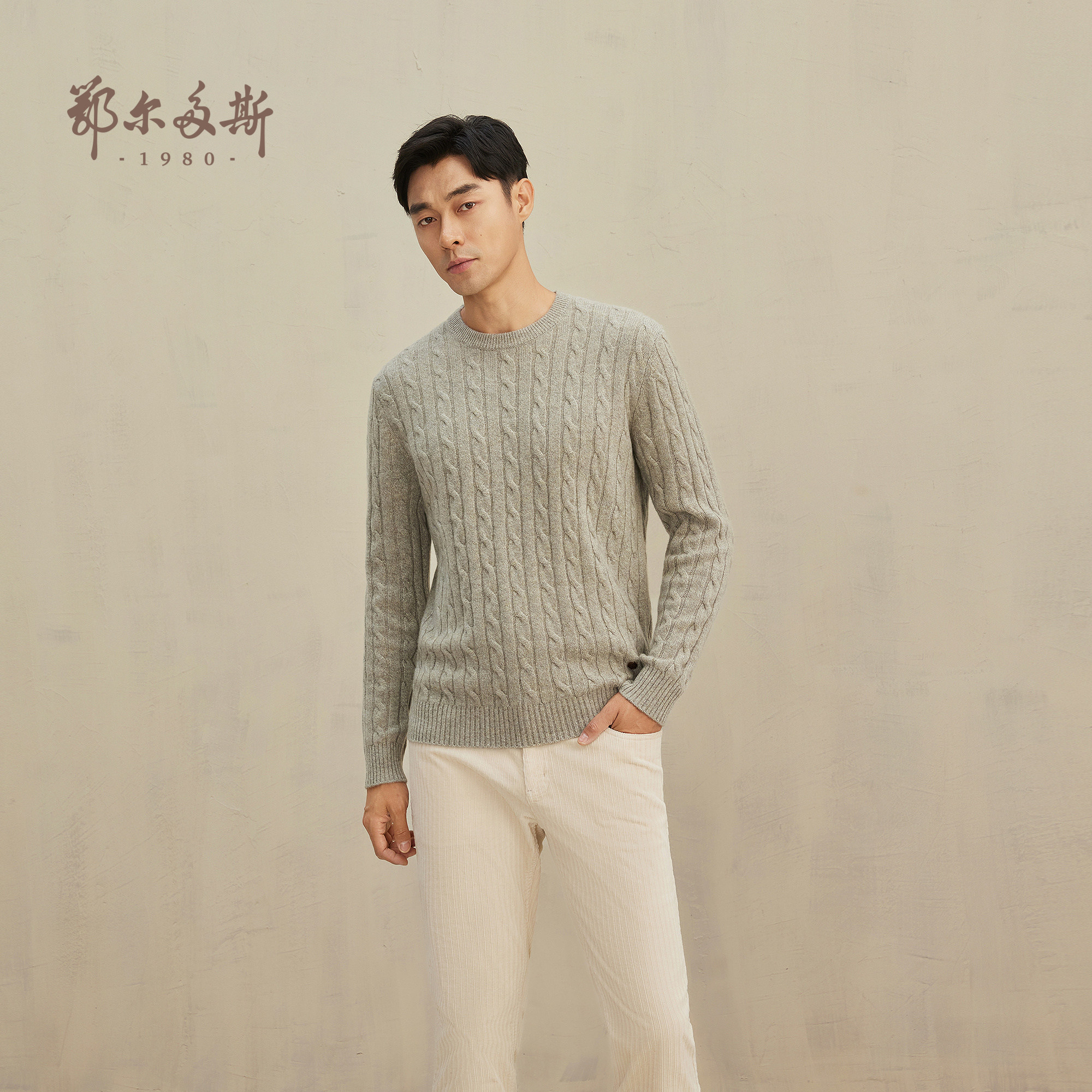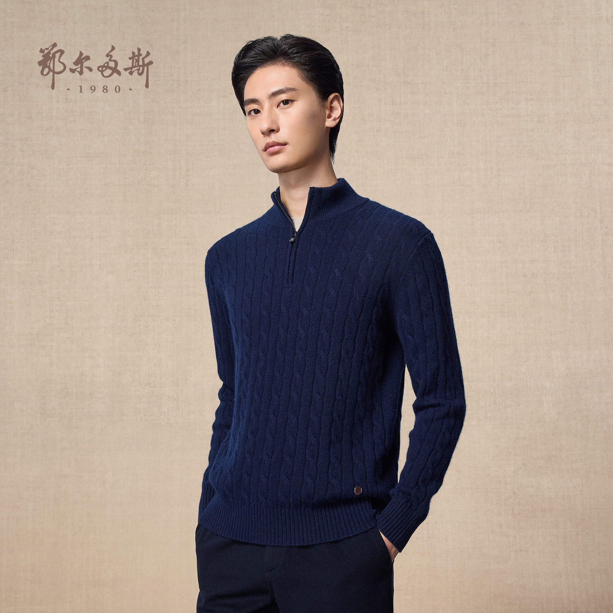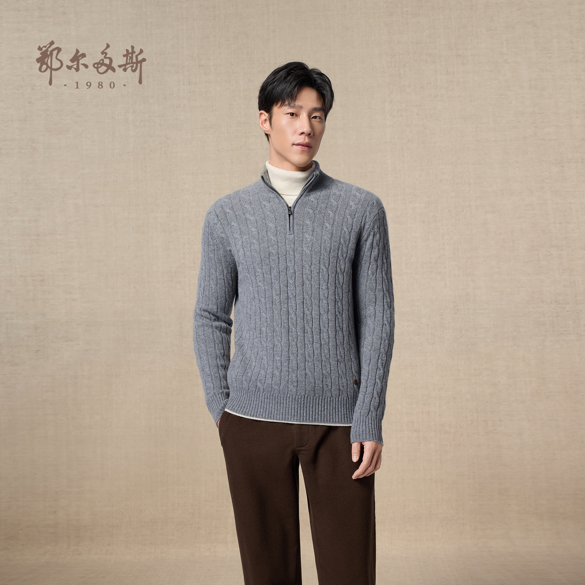 鄂尔多斯1980 男装半高领/圆领绞花羊绒衫25年秋冬新品保暖针织衫