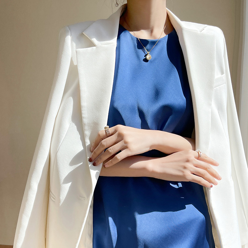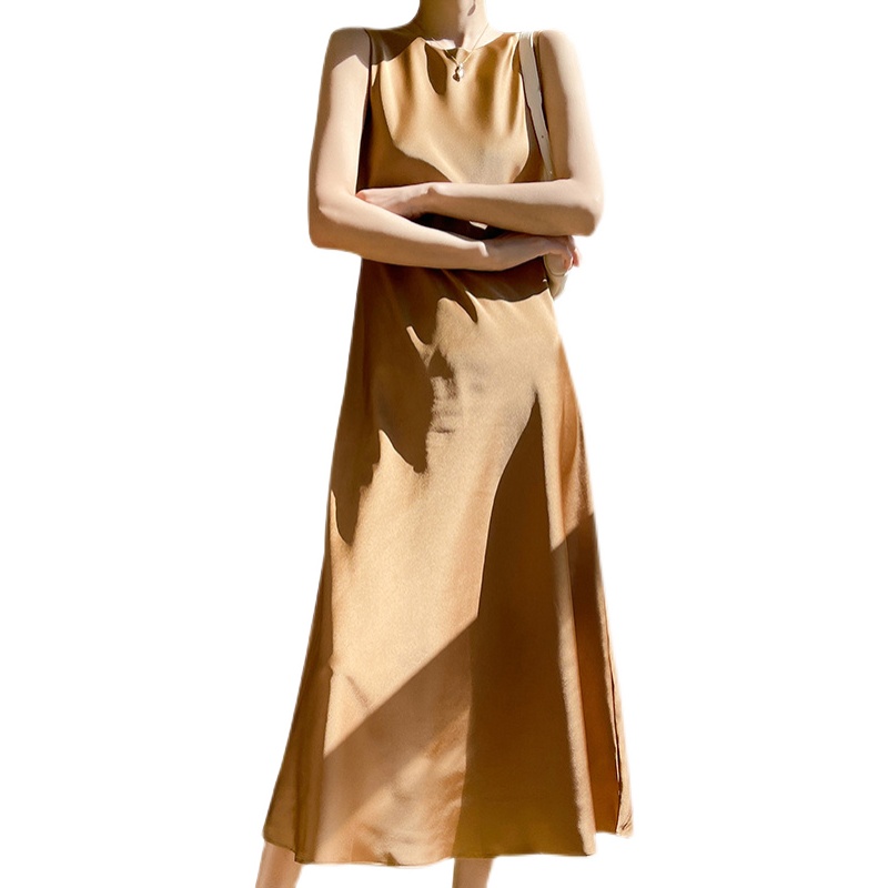 法式复古吊带连衣裙女2022夏季新款A字裙性感光泽缎面V领过膝长裙