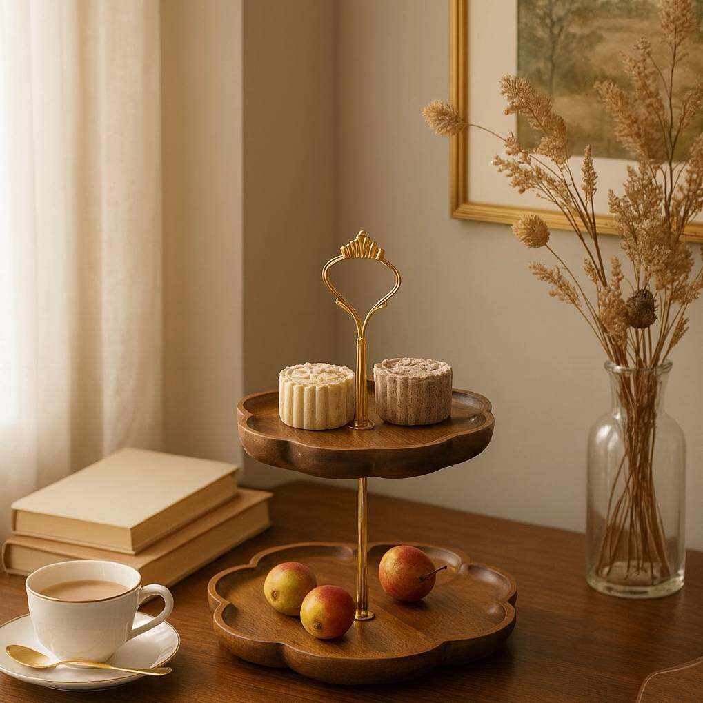 黑胡桃木双层托盘展示架多层糕点盘客厅零食点心盘盘轻奢餐具果盘