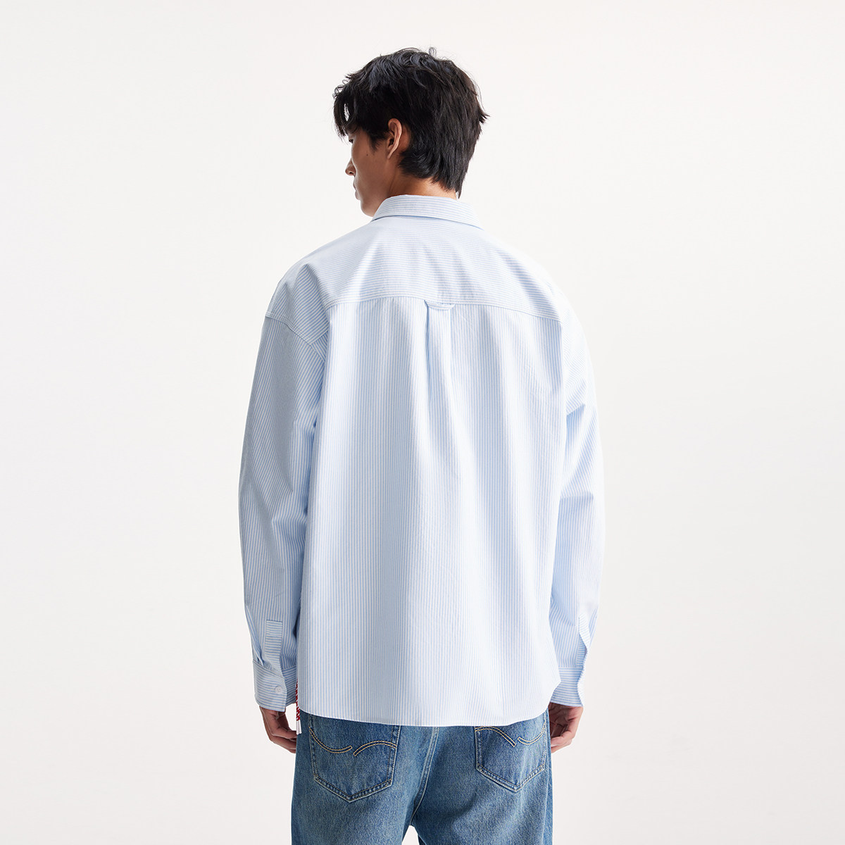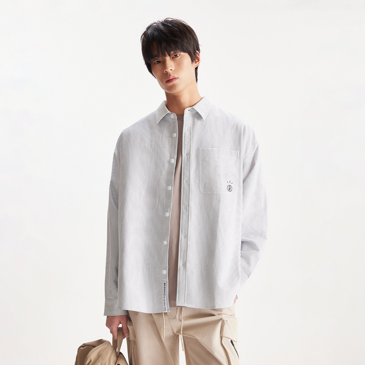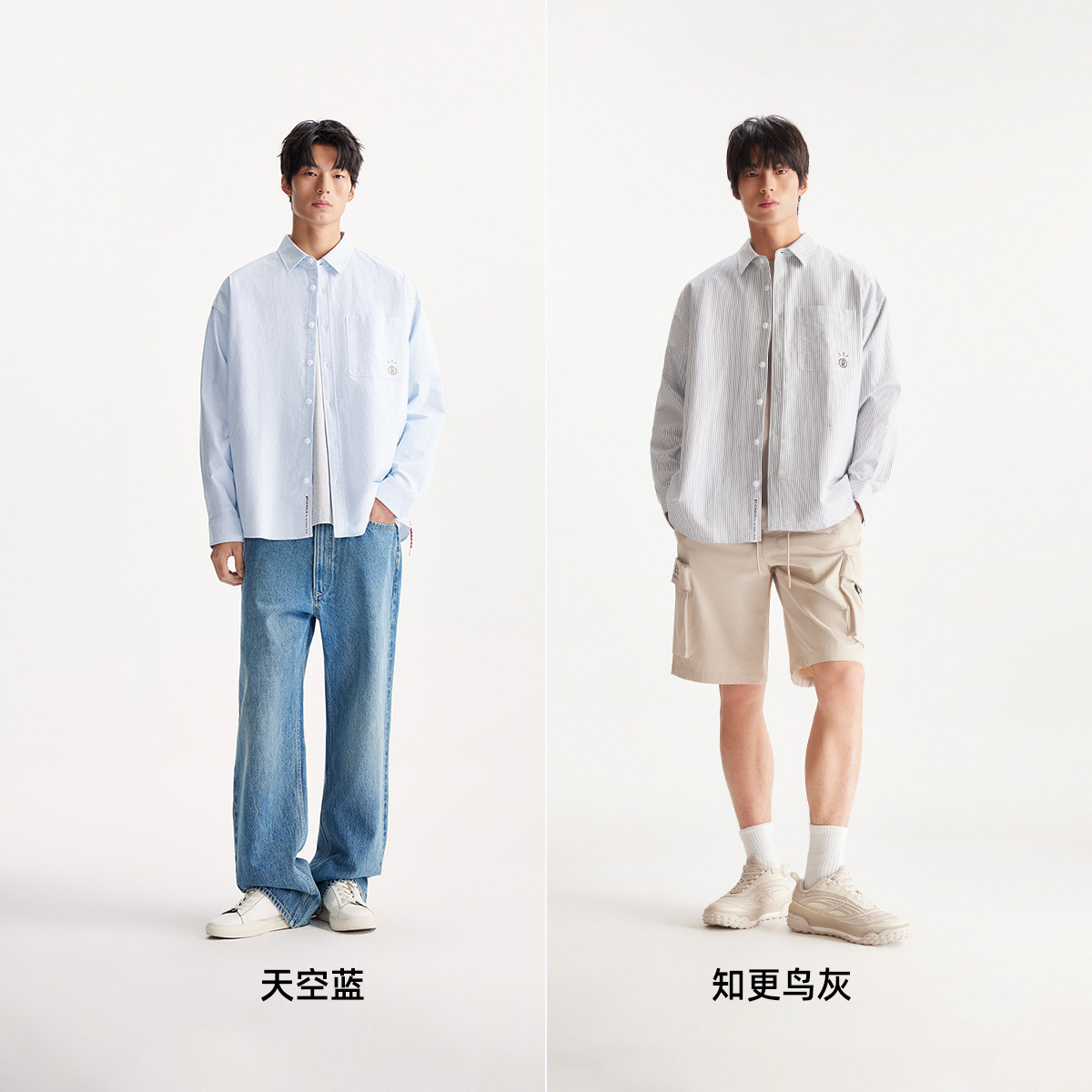 【衣启赢运】杰克琼斯衬衫男新款日系宽松条纹蓝衬衣外套上衣男装