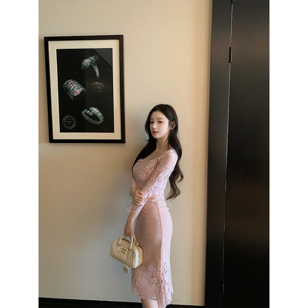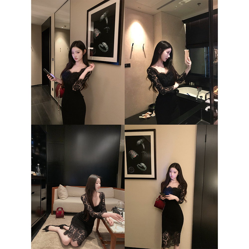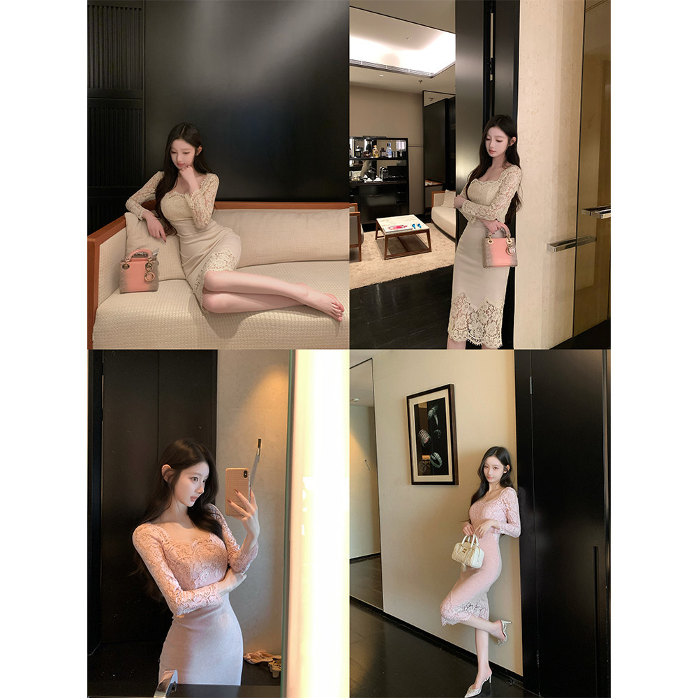 纯欲气质蕾丝包臀修身针织连衣裙
