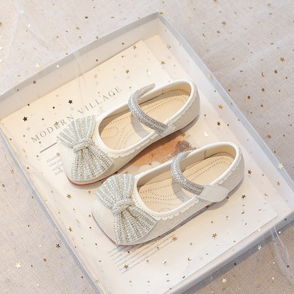 女童公主鞋2025新款春秋宝宝水晶鞋软底小皮鞋春秋款儿童爱莎鞋子
