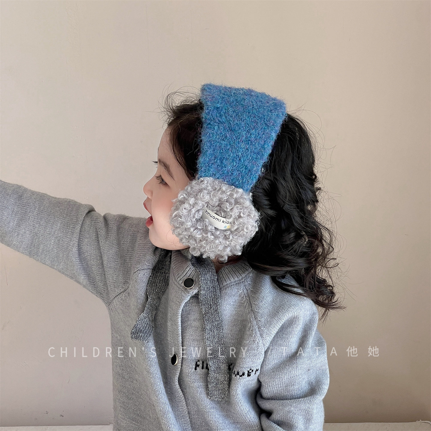 儿童蓝色羊羔毛绒耳罩冬季保暖防风护耳套可爱加厚防冻护耳耳捂子