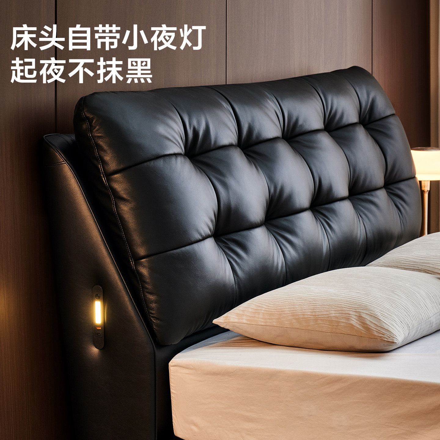 全友家居现代简约大黑熊皮床2025新款卧室1米8双人带抽高箱储物床