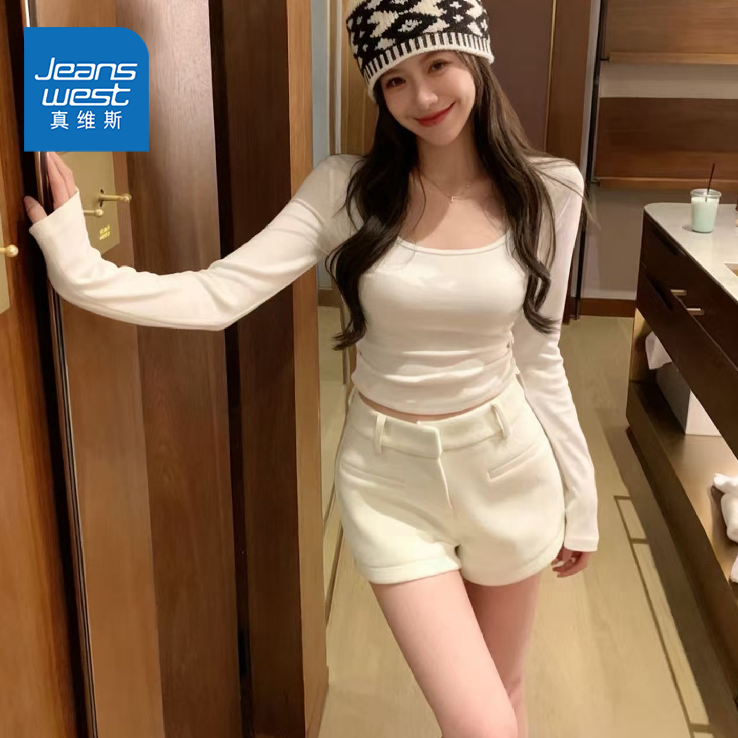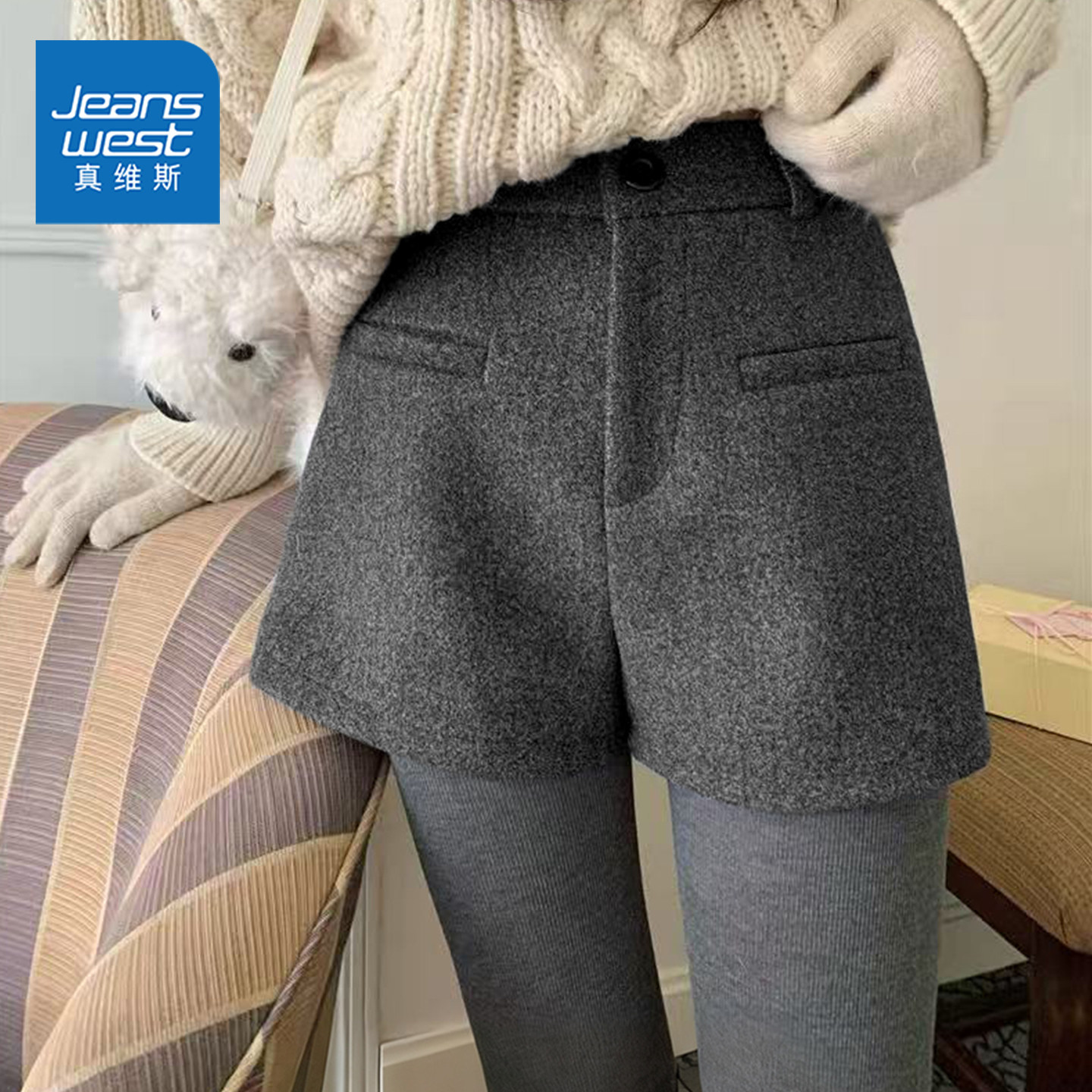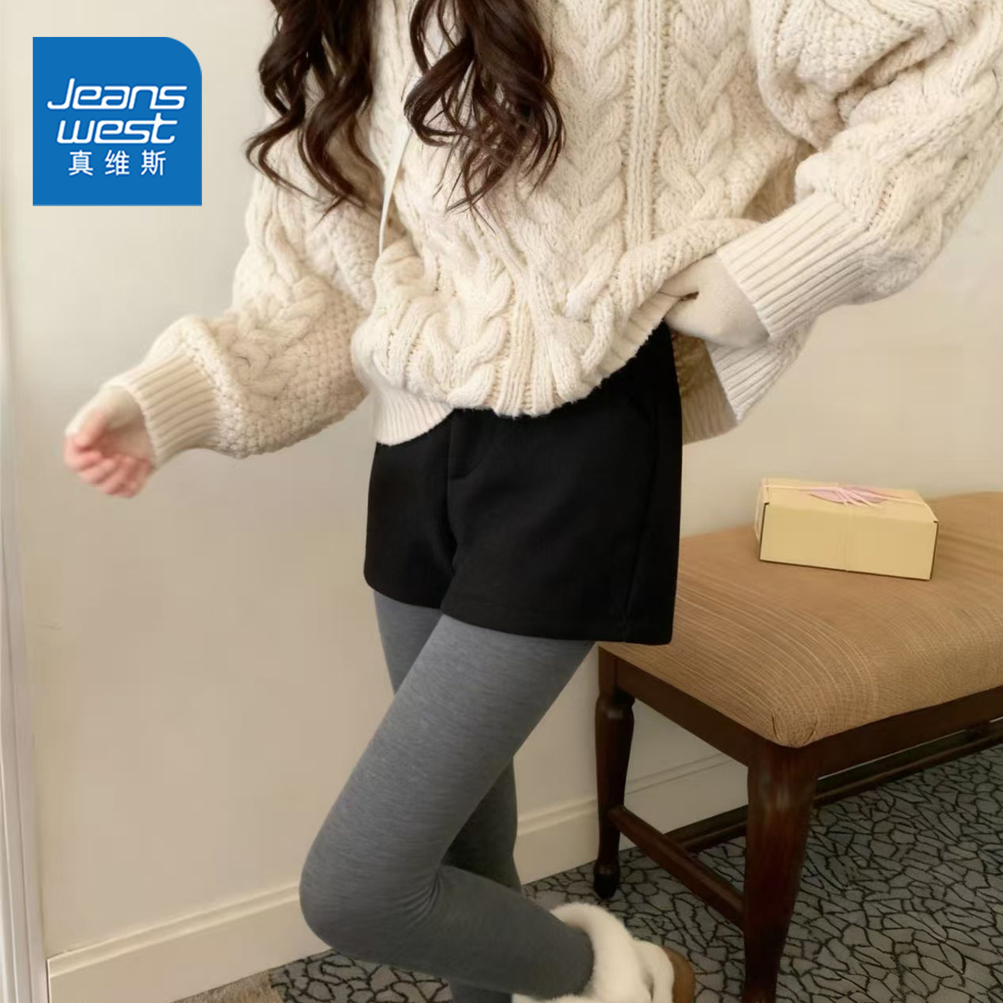 真维斯秋冬季新款打底靴裤女高腰显瘦显腿长热裤小个子加厚短裤E