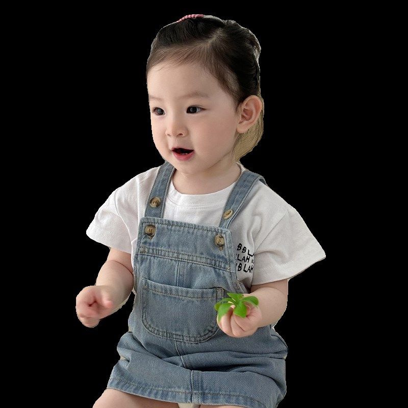 韩版女童夏季背带牛仔裙套装2024新款女宝宝儿童夏装洋气休闲裙子