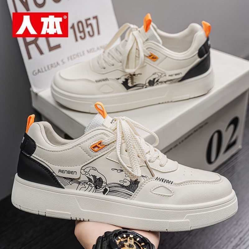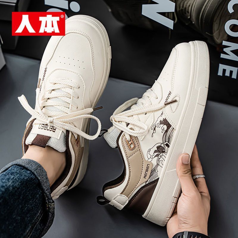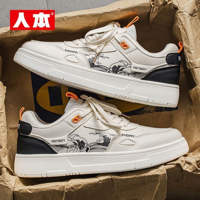 人本男鞋夏季2025新款国潮百搭板鞋子潮流学生运动休闲透气小白鞋