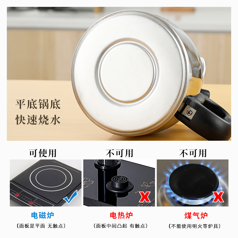 加厚304不锈钢家用烧水壶平底壶1.2L电磁炉黑晶炉专用泡茶煮水壶