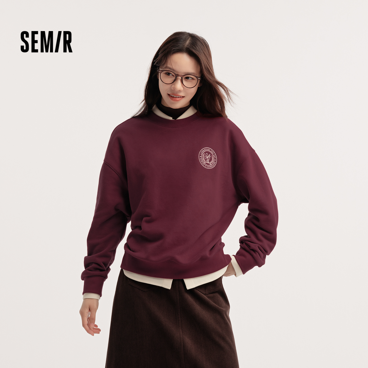 [商场同款]森马卫衣女oversize发热抗菌2024冬季新款绣花抓绒上衣