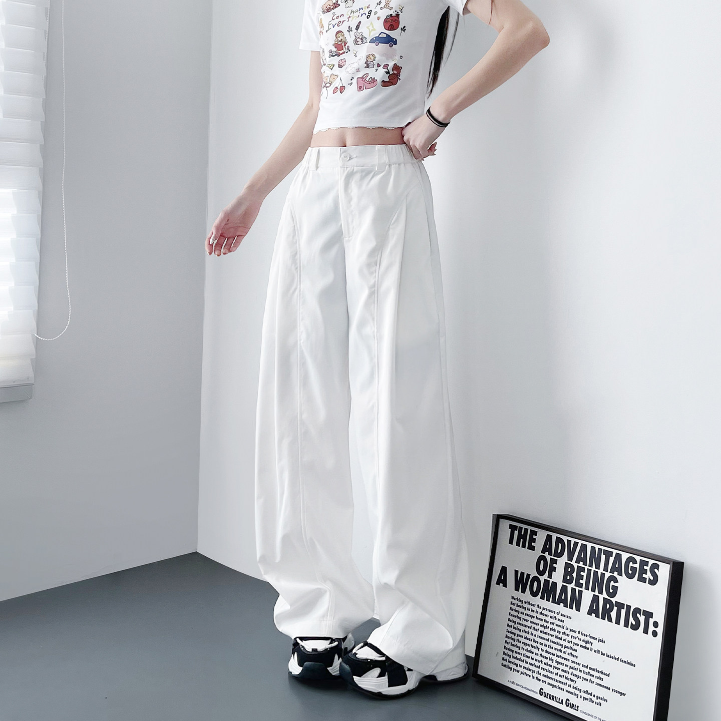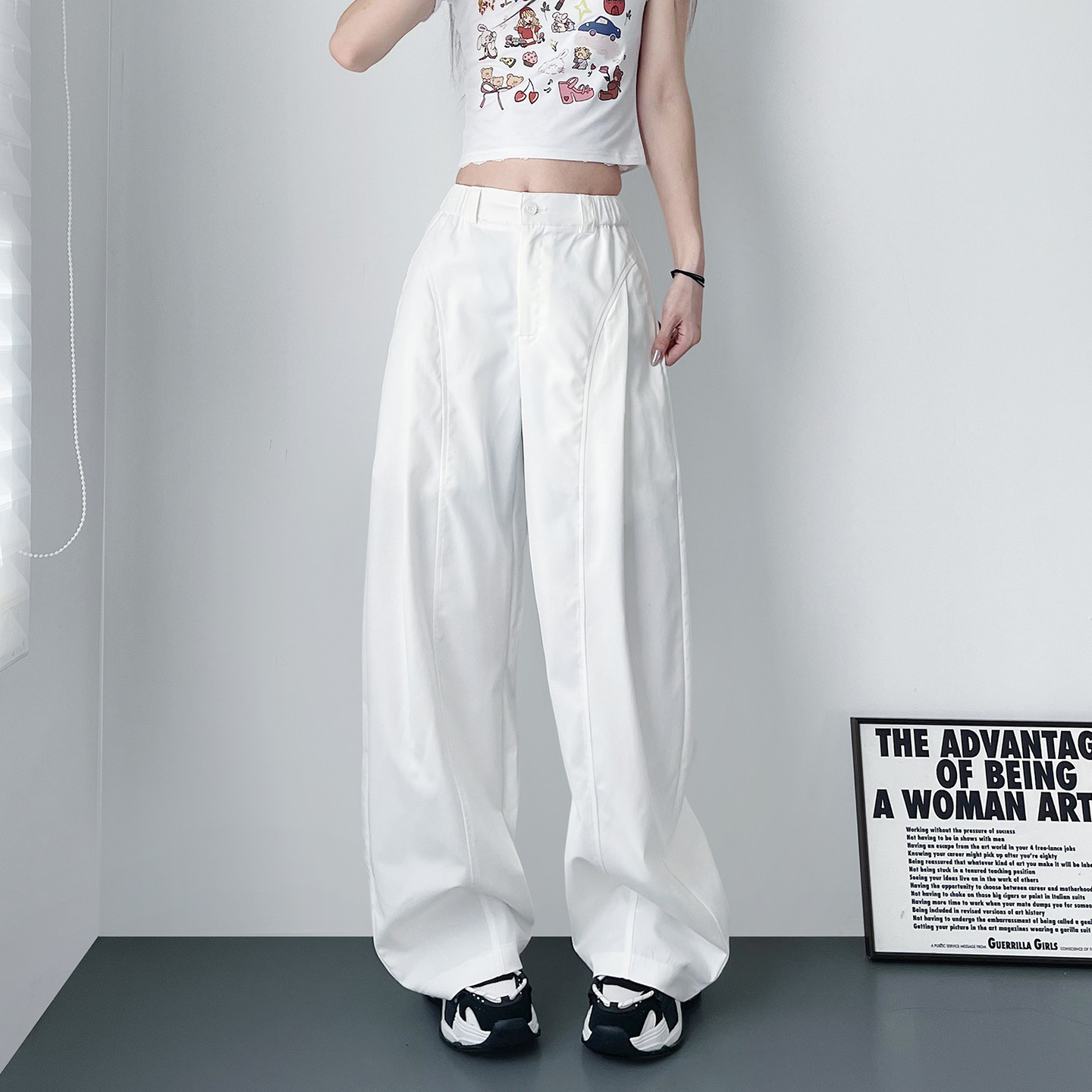 白色不透显瘦宽松弯刀裤女春季新款大码胖mm廓形设计感阔腿西装裤
