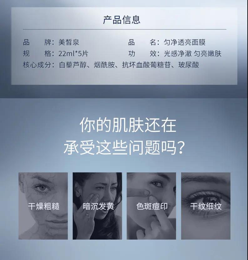 美皙泉匀净透亮面膜净发光Baby丝膜布丝滑瓷妆面膜贴片去黄提亮