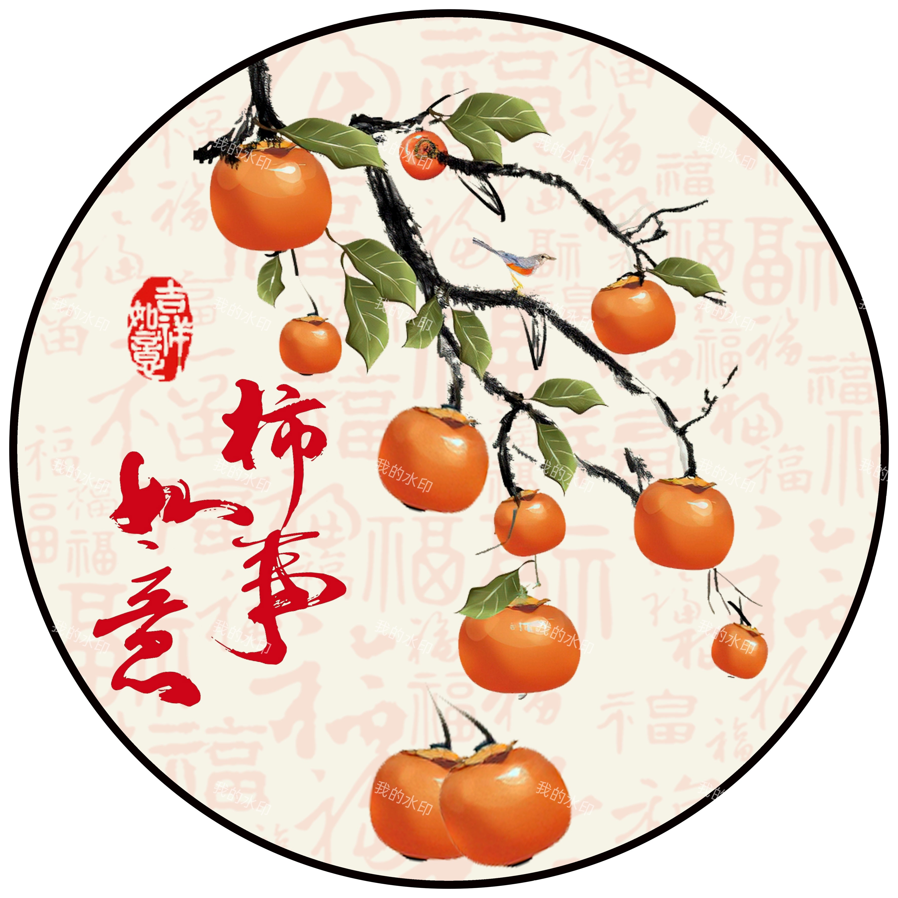 中式圆形装饰画自粘客厅红色福字五福临门家和玄关走廊过道美化