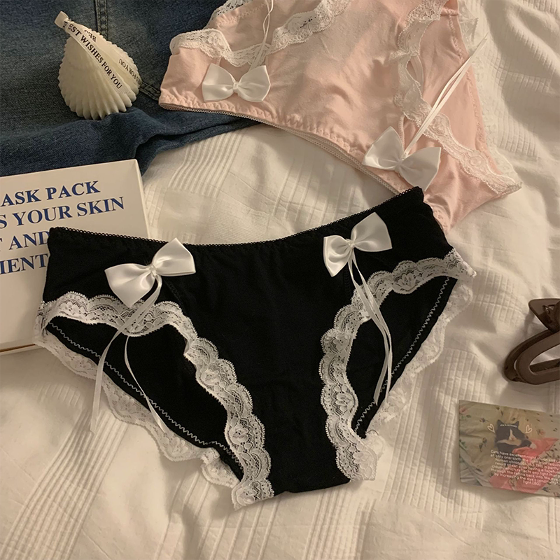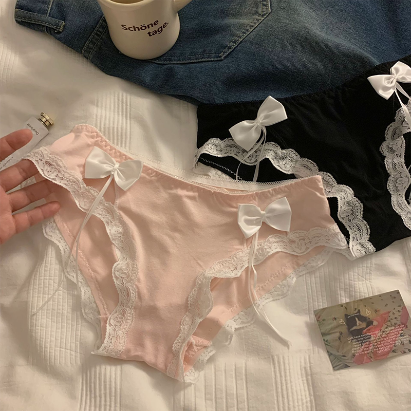 「长秋野水」镂空美臀内裤女士蕾丝边蝴蝶结低腰三角纯欲性感绝美