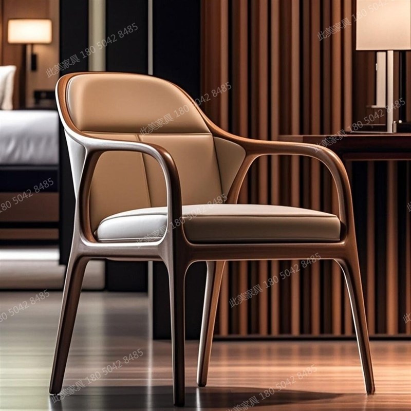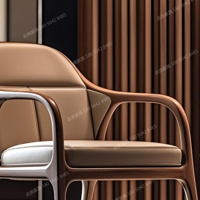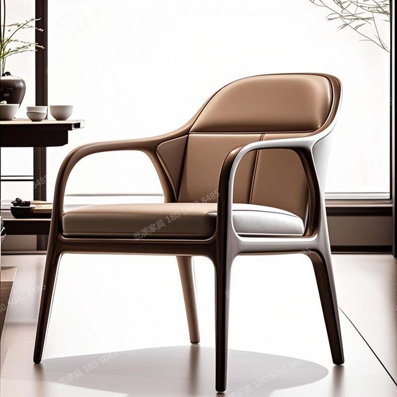 北美黑胡桃木实木真皮餐椅靠背椅现代轻奢书桌茶椅单人休闲沙发椅