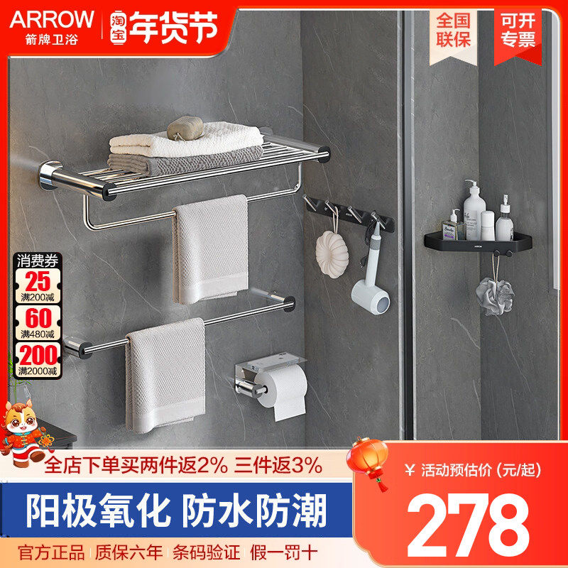 arrow箭牌卫浴不锈钢浴室五金挂件套装浴巾架毛巾架卫生间置物架
