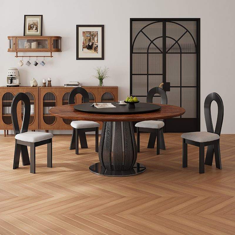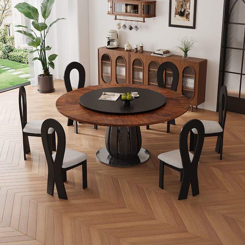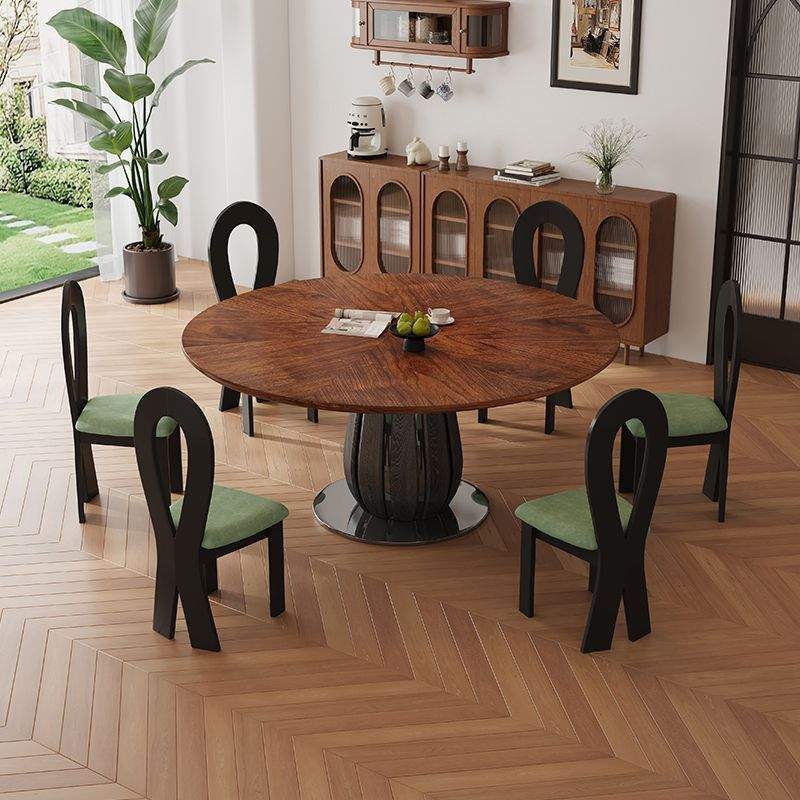 古风实木餐桌圆桌家用小户型复古胡桃木圆形餐桌椅组合法式吃饭桌