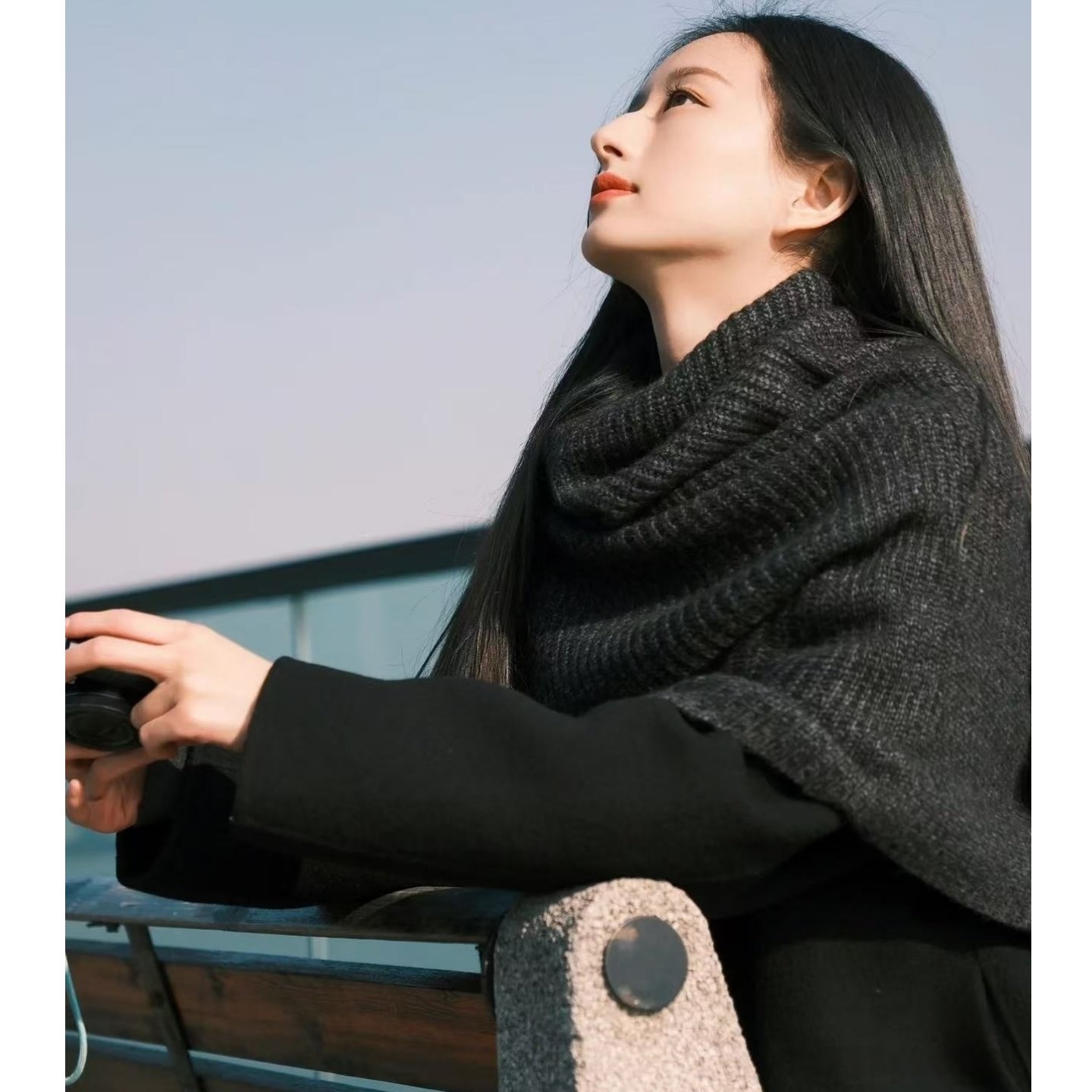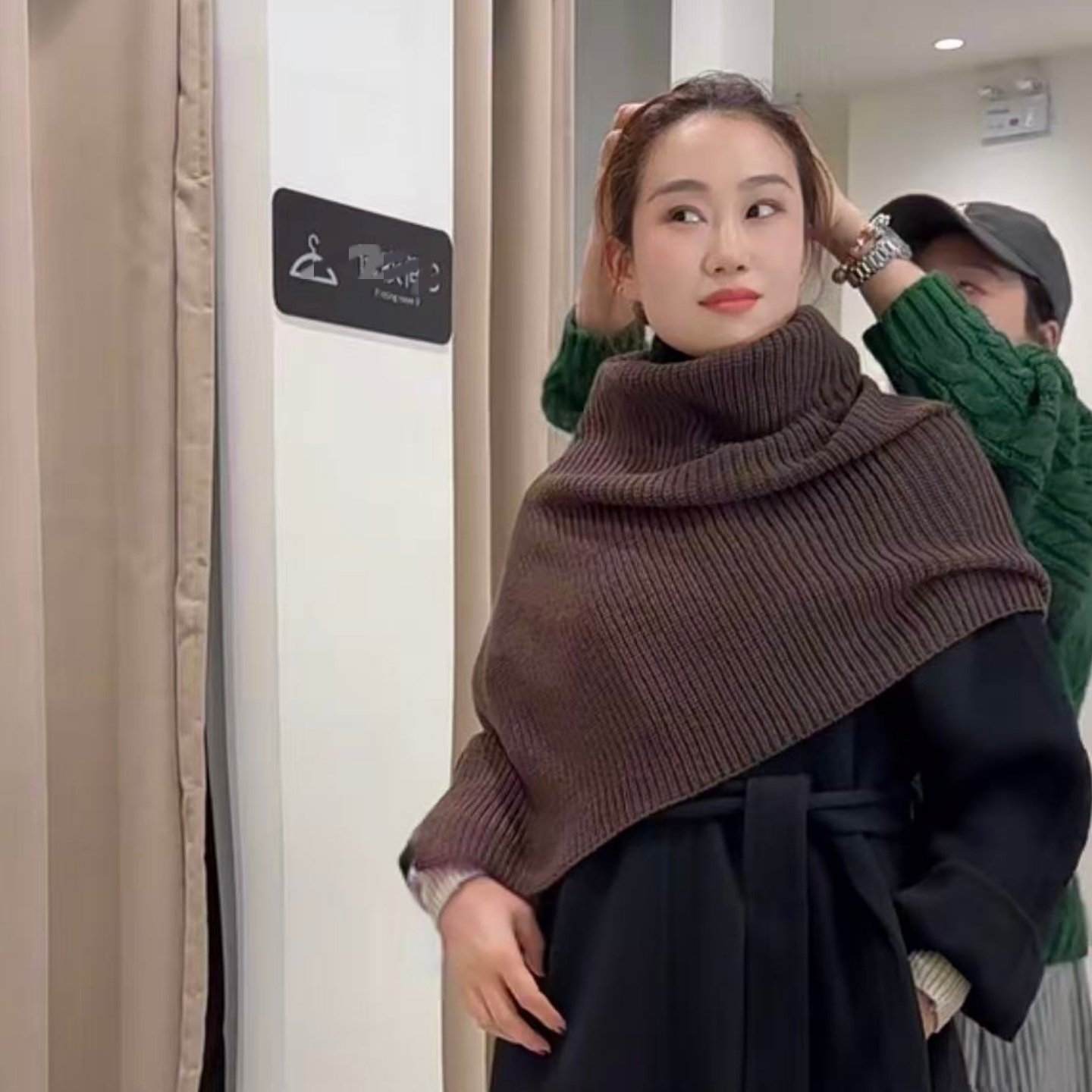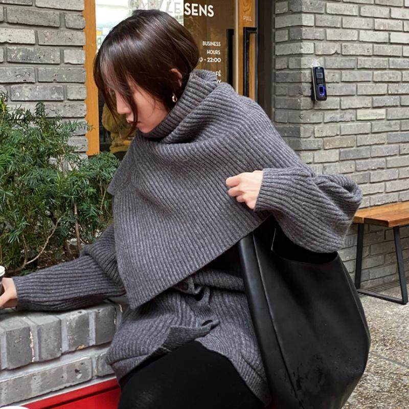韩版高领开叉羊绒披肩针织外搭