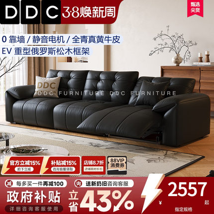 DDC意式轻奢零靠墙电动多功能黑色真皮沙发客厅2026新款小户型