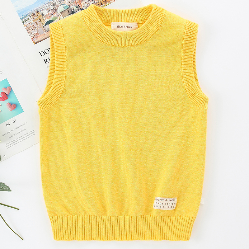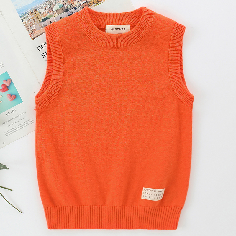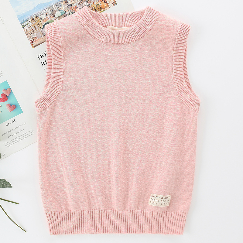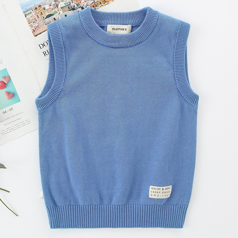 中大童纯棉线圆领马甲春秋男女童背心班服坎肩软糯无袖毛衣针织衫