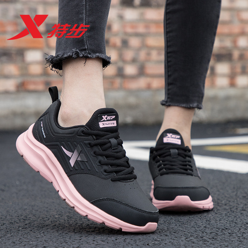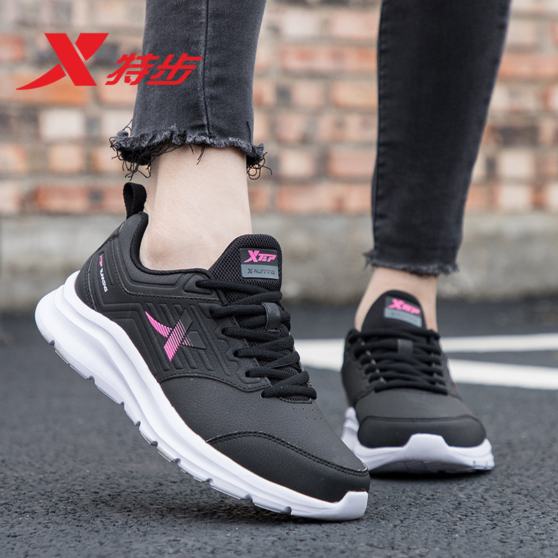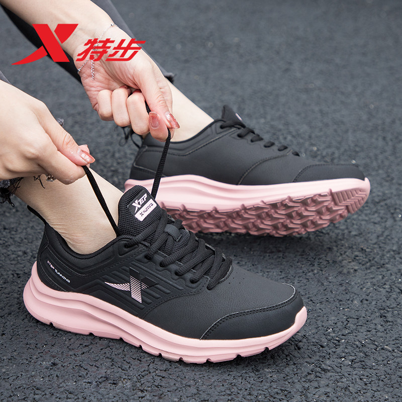 特步女鞋跑步鞋皮面防水运动鞋子