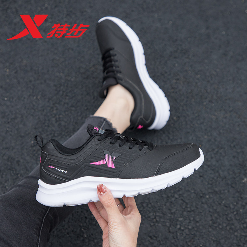 特步女鞋减震跑步鞋冬季新款软底轻便休闲鞋子女款防水皮面运动鞋