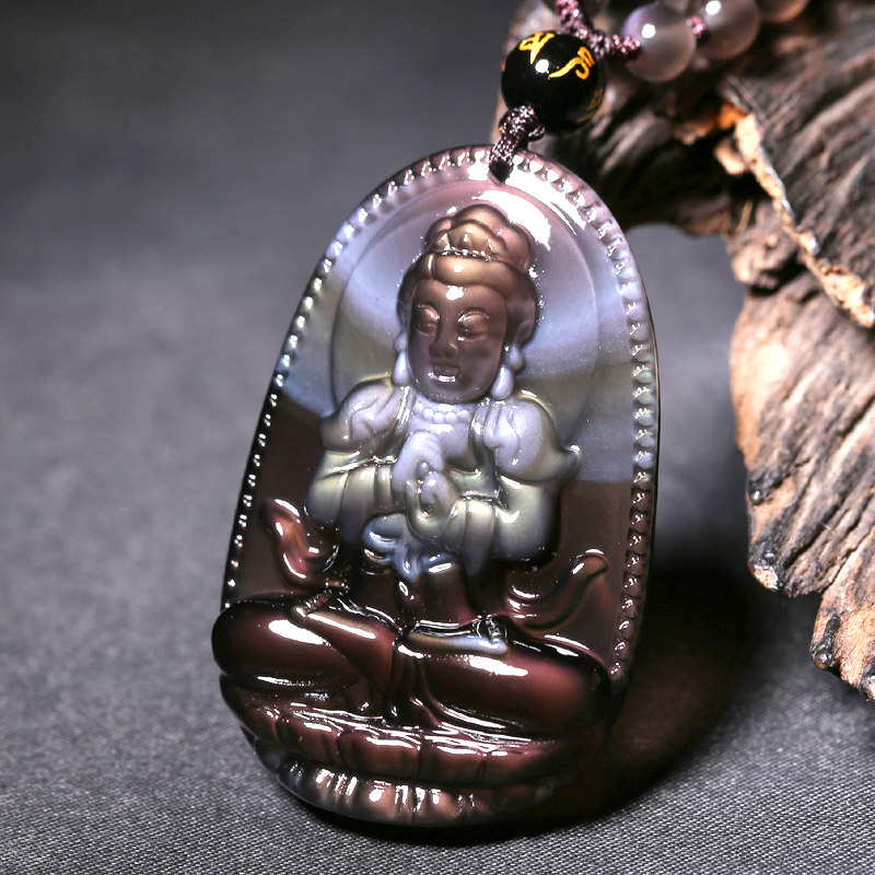 宫妃彩虹蓝黑曜石项链大日如来菩萨生肖羊猴守护神吊坠本命佛