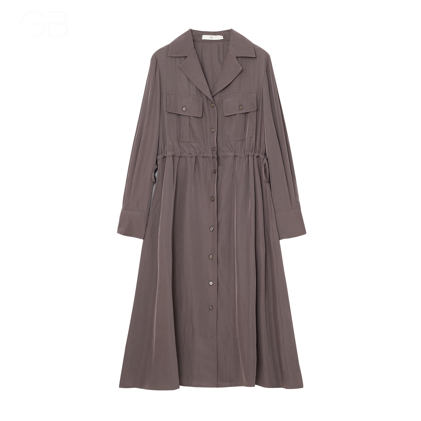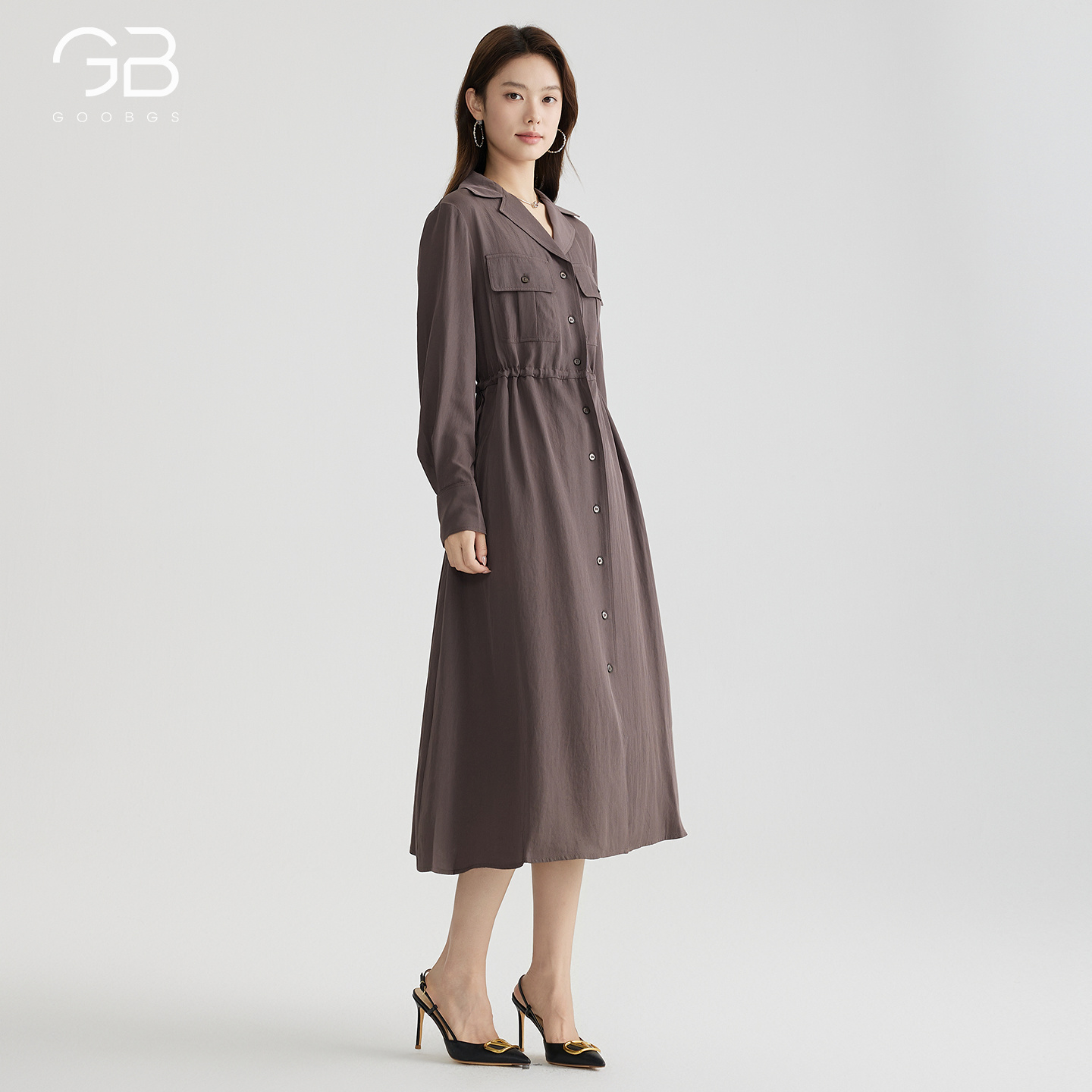 谷邦醋酸法式衬衫连衣裙女2025秋季新款设计感气质收腰中长款裙子