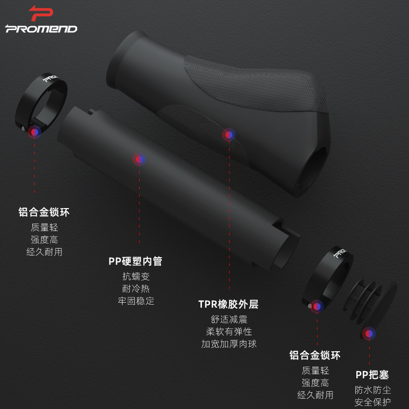 PROMEND自行车把套山地车折叠车橡胶肉球带锁死人体工学骑行握把