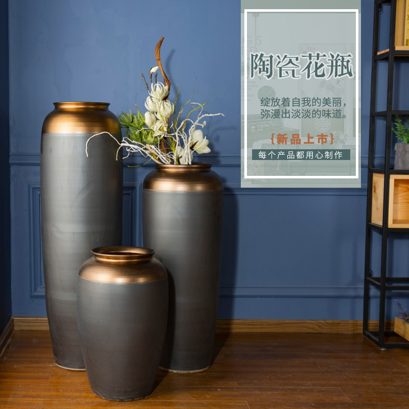 景德镇现代简约陶瓷花瓶客厅家居插花摆件落地陶罐欧式装饰黑金色