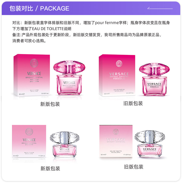 【自营】侯明昊VERSACE范思哲粉耀晶钻粉钻女士香水50/90ml礼物