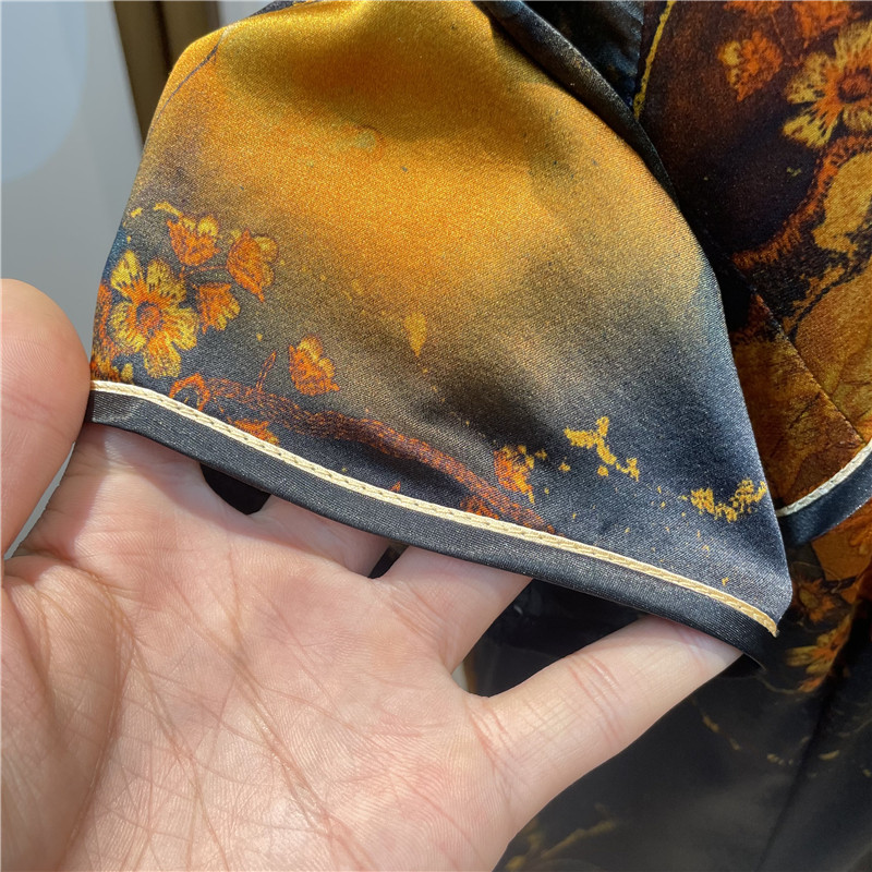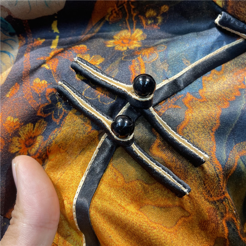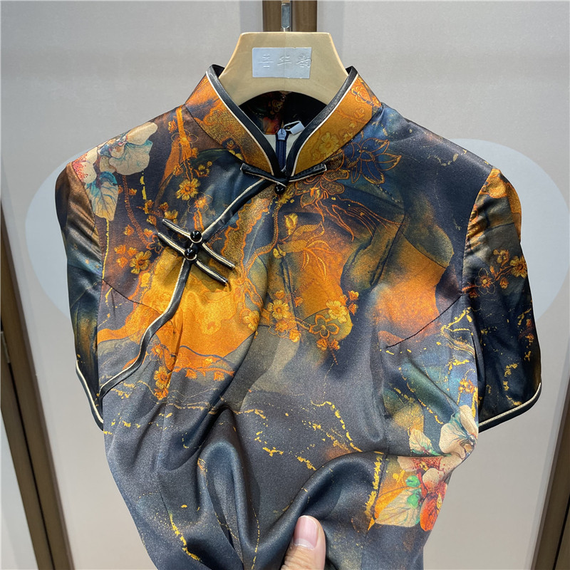 真丝旗袍气质印花斜襟盘扣显瘦桑蚕丝高端连衣裙3-3-3
