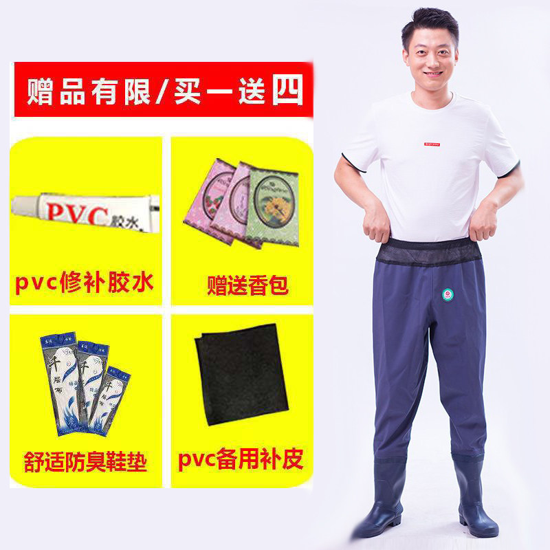 齐腰下水裤防水雨裤加厚水库捕鱼钓鱼衣服男连体雨鞋皮叉半身渔裤