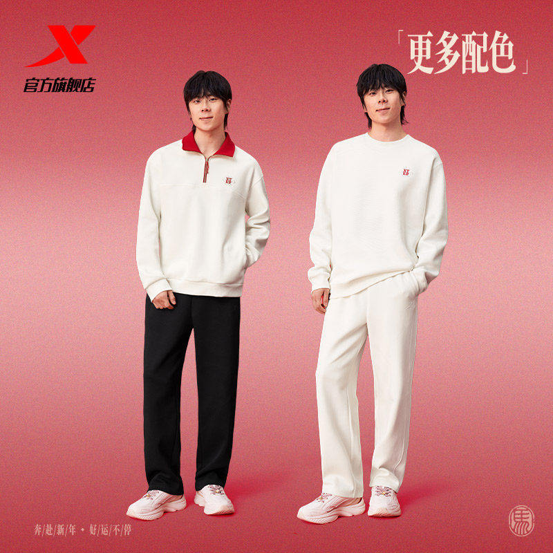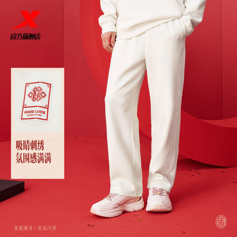 【商场同款】特步男士运动裤2026春新品时尚百搭纯色直筒针织长裤