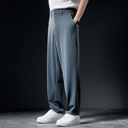 休闲裤男西裤夏垂感超薄冰丝速干弹力2024直筒宽松加肥加大码男裤