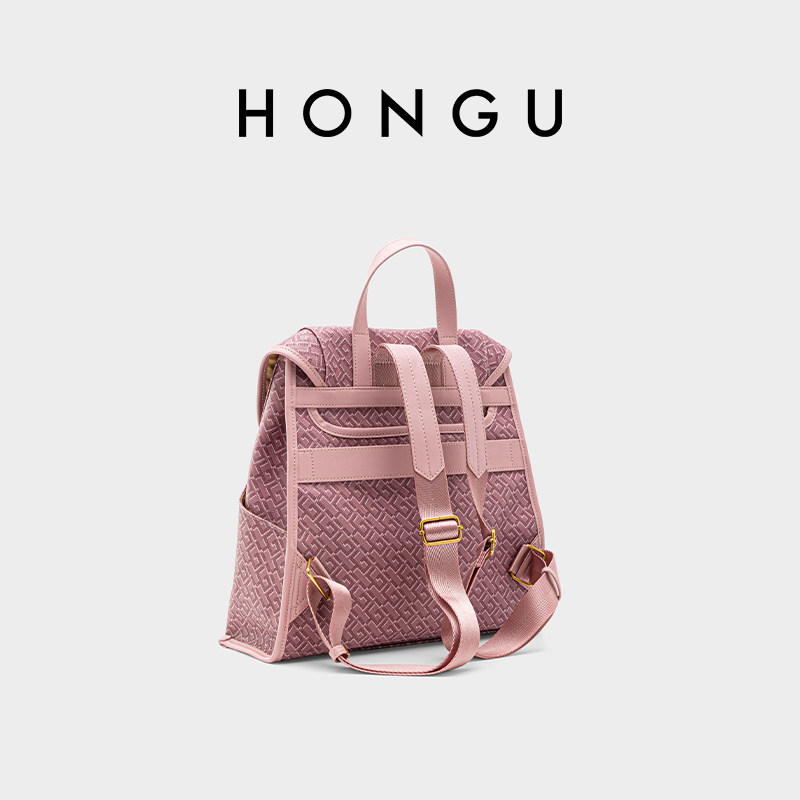 HONGU/红谷新款双肩包老花纹回纹书包英伦风新潮百搭小众款背包