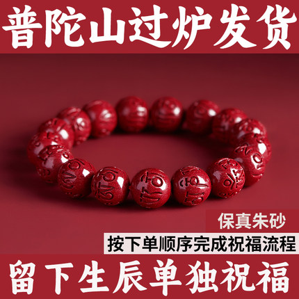 【普陀山祝福】本命年朱砂手串六字真言手链女款护身符转运珠